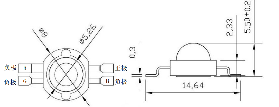 3W大功率RGB全彩4脚LED灯珠