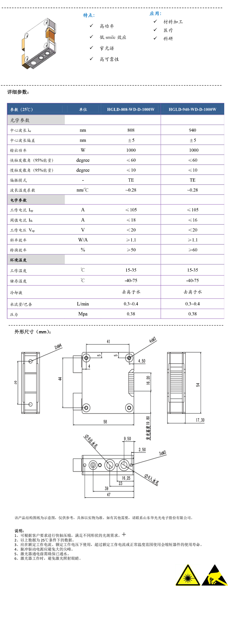 TM0HGLD-xxx-CP-D-1000W微通道叠阵激光器