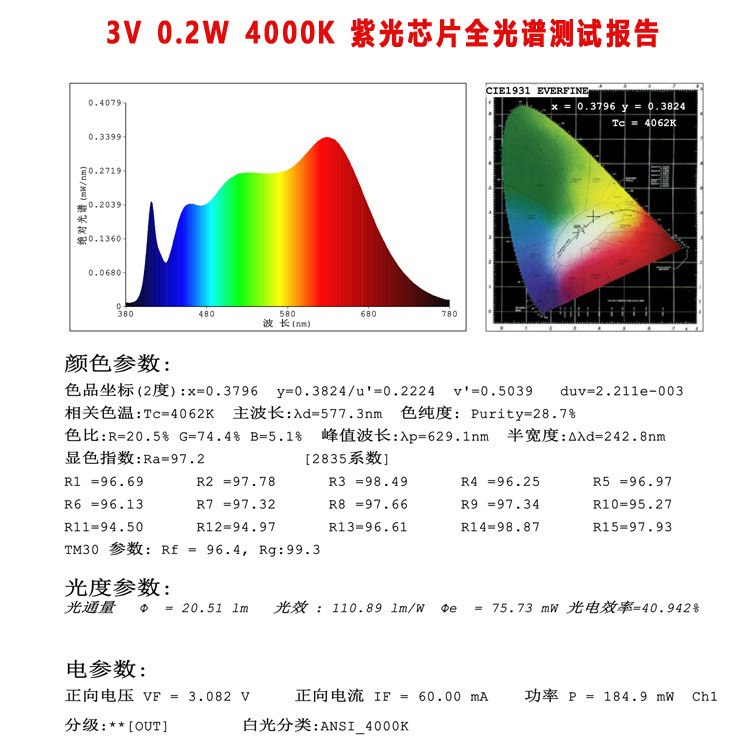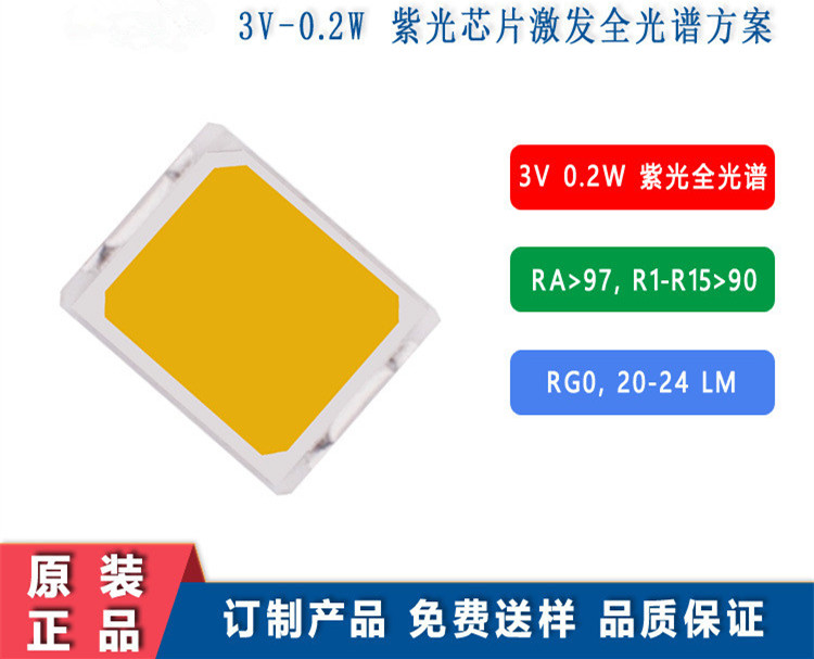 3V 0.2W 2835 全光谱 紫光方案 3V 0.2W 2835 RA〉97教育照明低蓝