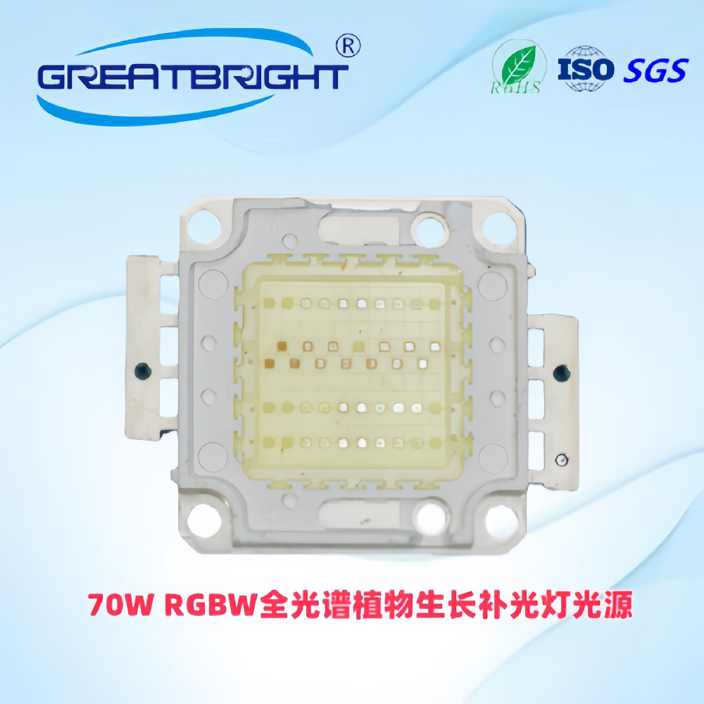 说明:70W全光谱植物生长集成光源,主要用于大棚或室内植物生长补光,加快植物生长,