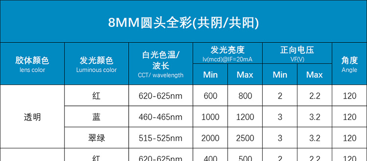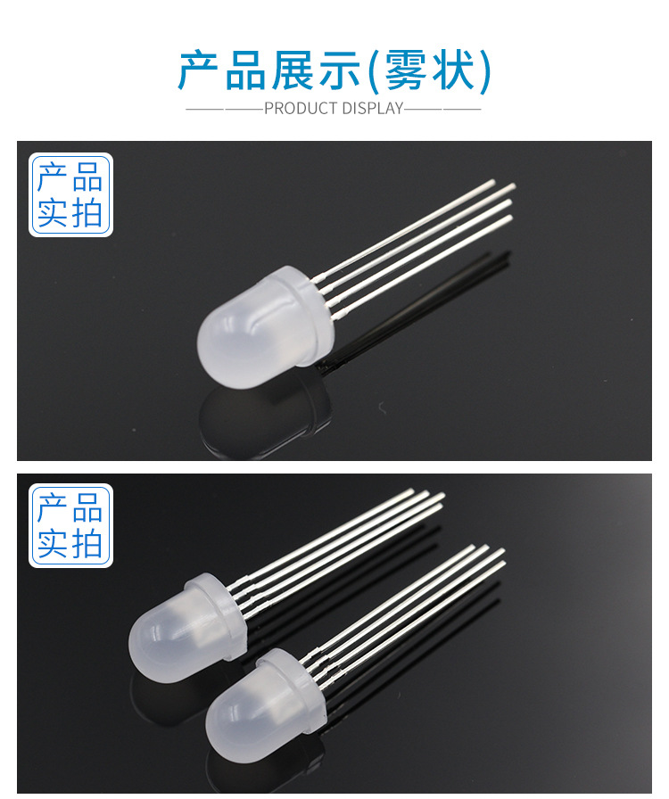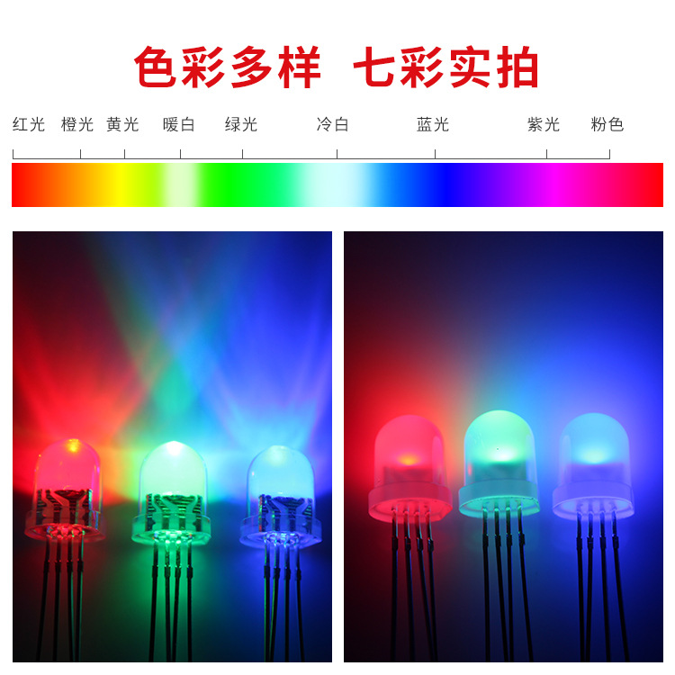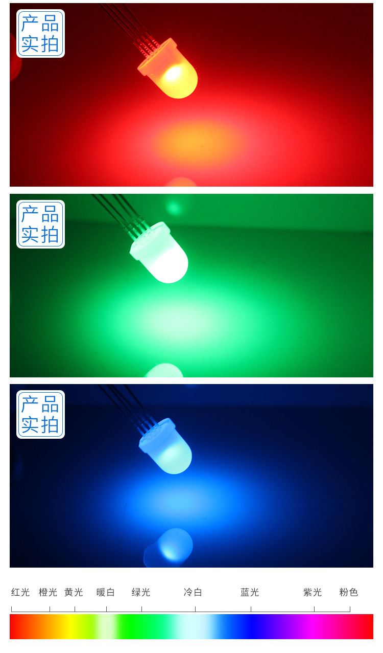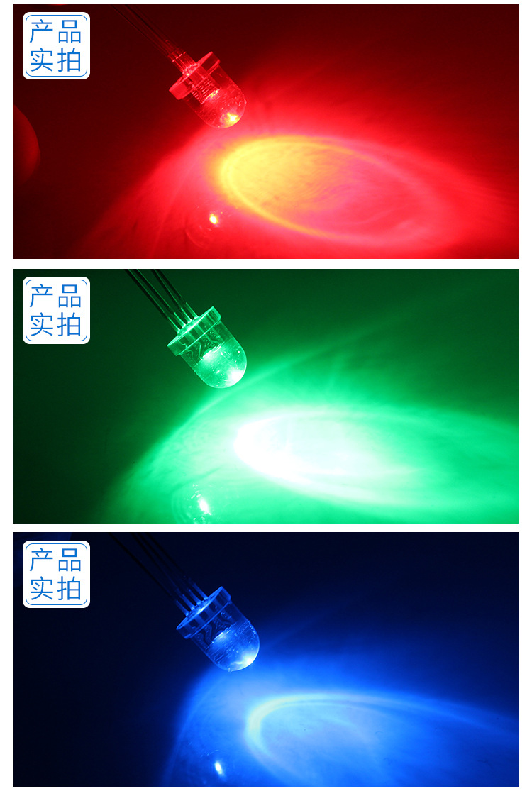 尺寸:直径8mm,圆头直插式RGB。