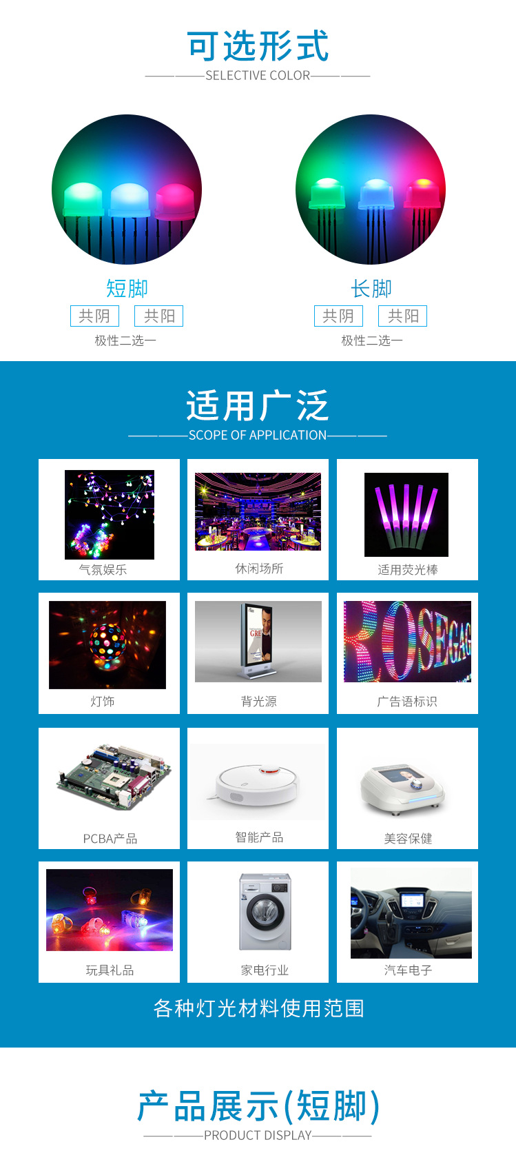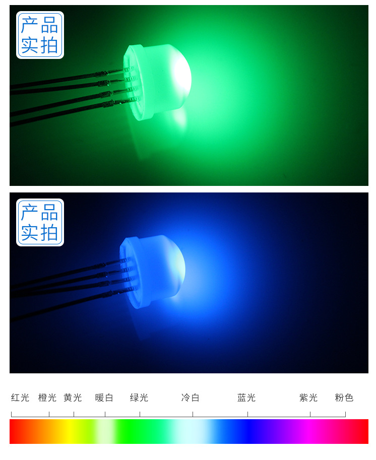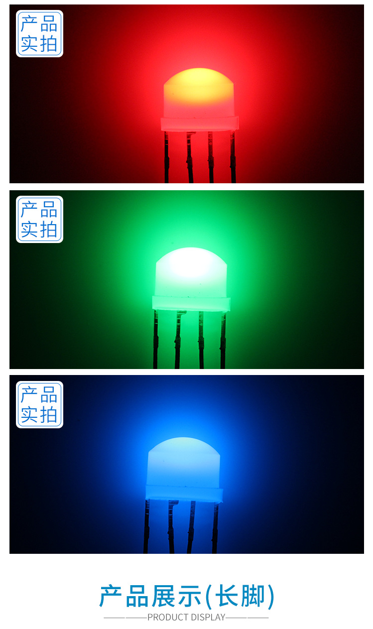 尺寸:直径8mm,草帽直插式RGB。