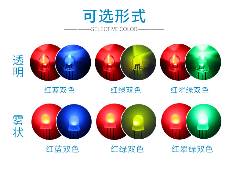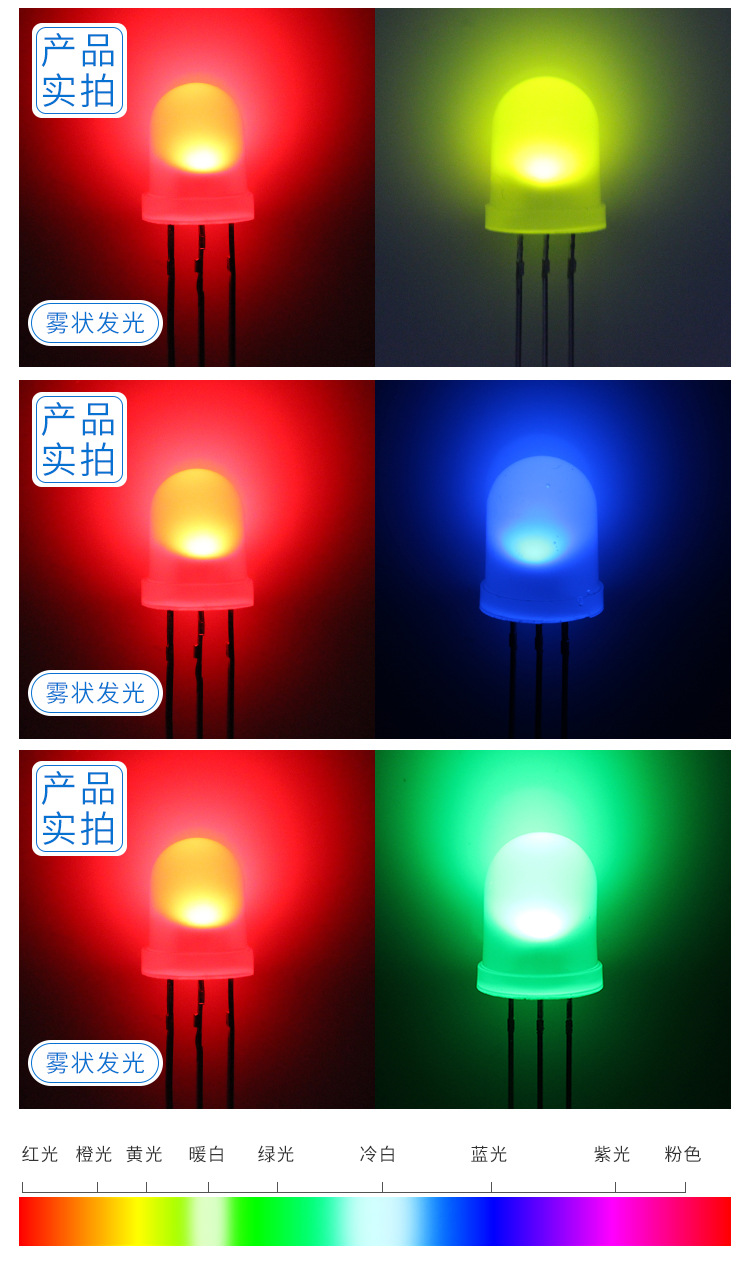 F10灯珠10MM圆头双色透明雾状直插LED灯珠
