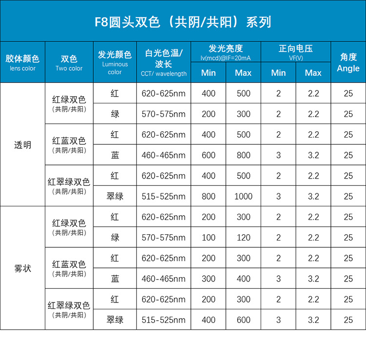 F10/10mm圆头双色LED灯珠(AG恒峰光电)产品说明